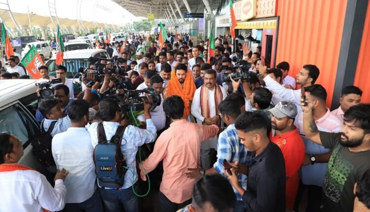 ଭୁବନେଶ୍ୱର: ଭୁବନେଶ୍ୱରରେ ପହଞ୍ଚିଛନ୍ତି ଦୁଇକେନ୍ଦ୍ର ମନ୍ତ୍ରୀ। ଦିନିକିଆ ଓଡ଼ିଶା ଗସ୍ତରେ ଆସିଛନ୍ତି ଦୁଇ କେନ୍ଦ୍ରମନ୍ତ୍ରୀ। ଆଜି କେନ୍ଦ୍ର ସୂଚନା ଓ ପ୍ରସାରଣ ତଥା ଯୁବ ବ୍ୟାପାର ଓ କ୍ରୀଡ଼ା ମନ୍ତ୍ରୀ ଅନୁରାଗ ଠାକୁର ଏବଂ କେନ୍ଦ୍ର ଶିକ୍ଷା ମନ୍ତ୍ରୀ ଧର୍ମେନ୍ଦ୍ର ପ୍ରଧାନ ପହଞ୍ଚିଛନ୍ତି। ଭୁବନେଶ୍ୱର ବିମାନବନ୍ଦରରେ ପହଞ୍ଚିବା ପରେ ଦୁଇ କେନ୍ଦ୍ର ମନ୍ତ୍ରୀଙ୍କୁ ଦଳ ତରଫରୁ ଭବ୍ୟ ସ୍ଵାଗତ ସମ୍ବର୍ଦ୍ଧନା ଦିଆଯାଇଥିଲା।